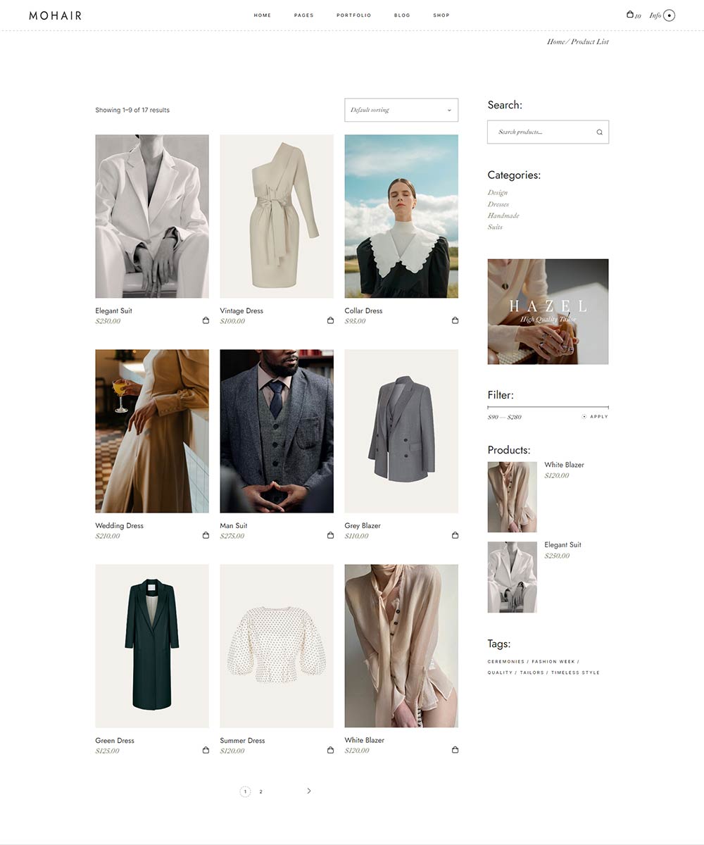 Online StoreIn addition to being fully compatible with WooCommerce, Mohair features a diverse selection of captivating & easily adjustable product lists & single product layouts.
